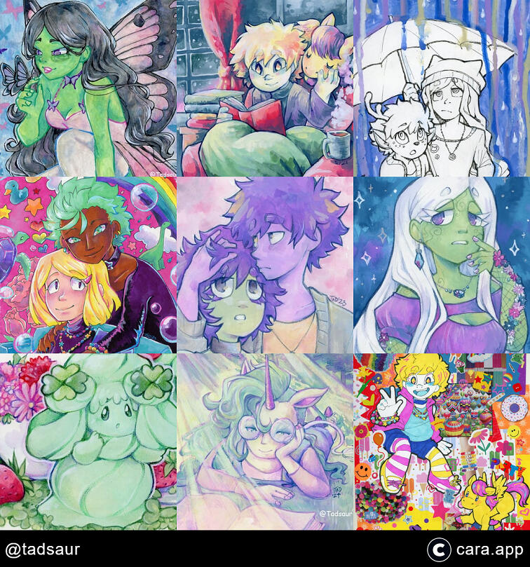 I'm Tad, I love creating different types of art and my main passion is drawing. I'm currently working on making a Neocities website. It's pretty rough right now, but it exists.I also do some printing work for Harmony, and occasionally sneak some of my drawings into her monthly mail club goodies while I'm at it.